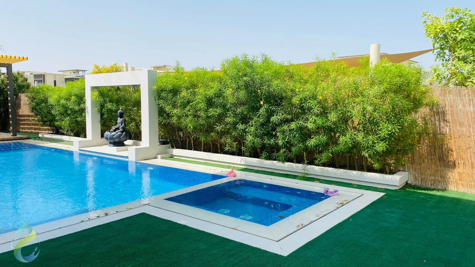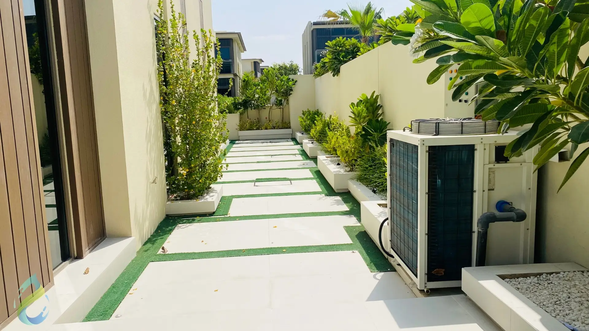 The floor tiling was another highlight of the project, chosen to match the villa’s architecture while ensuring durability and ease of maintenance. Together, these elements create a seamless flow throughout the outdoor space, merging elegance with practicality.